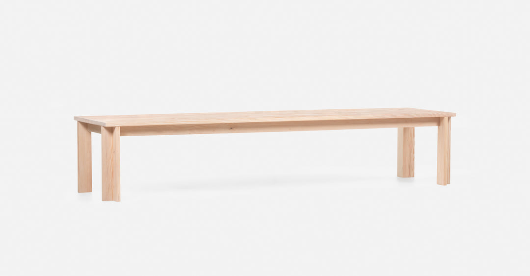 Table One reflects a universal heritage that is fixed without time or place. With an emphasis on function and the sensory response, this vast table, with lengths of up to 380cm (149 2/3”), has a tabletop made from just two planks of astonishingly proportioned planks of Douglas Fir timber. It is designed to be passed from generation to generation, earning the value of time and marks of memories past.